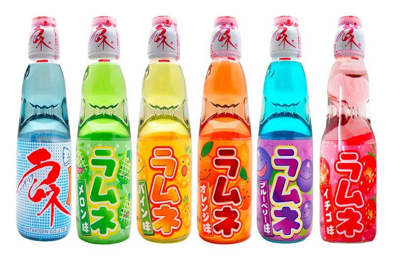 - Ramune: a popular soda with a unique marble seal that you have to push down to open