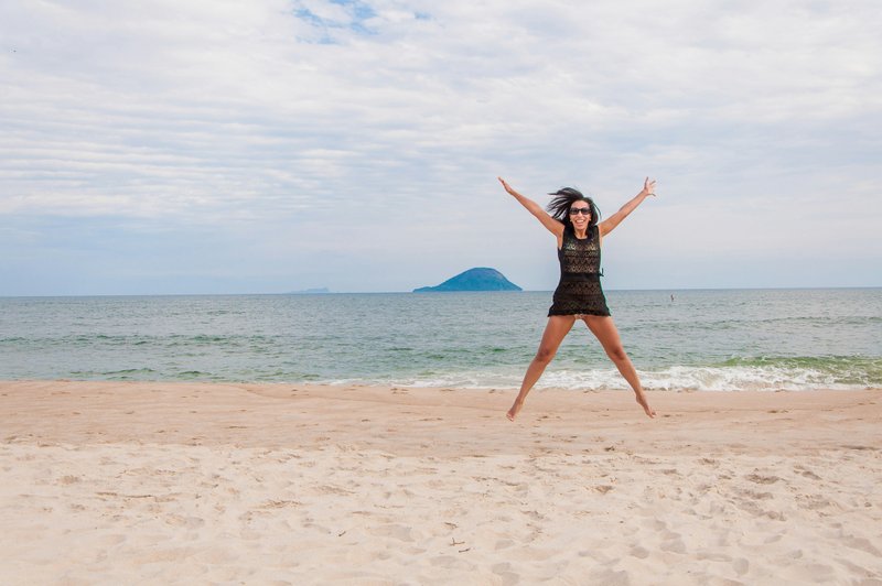 · Open your legs and arms to the sides: keeping your knees slightly bent, open your feet wider than your shoulder and arms right above the head.